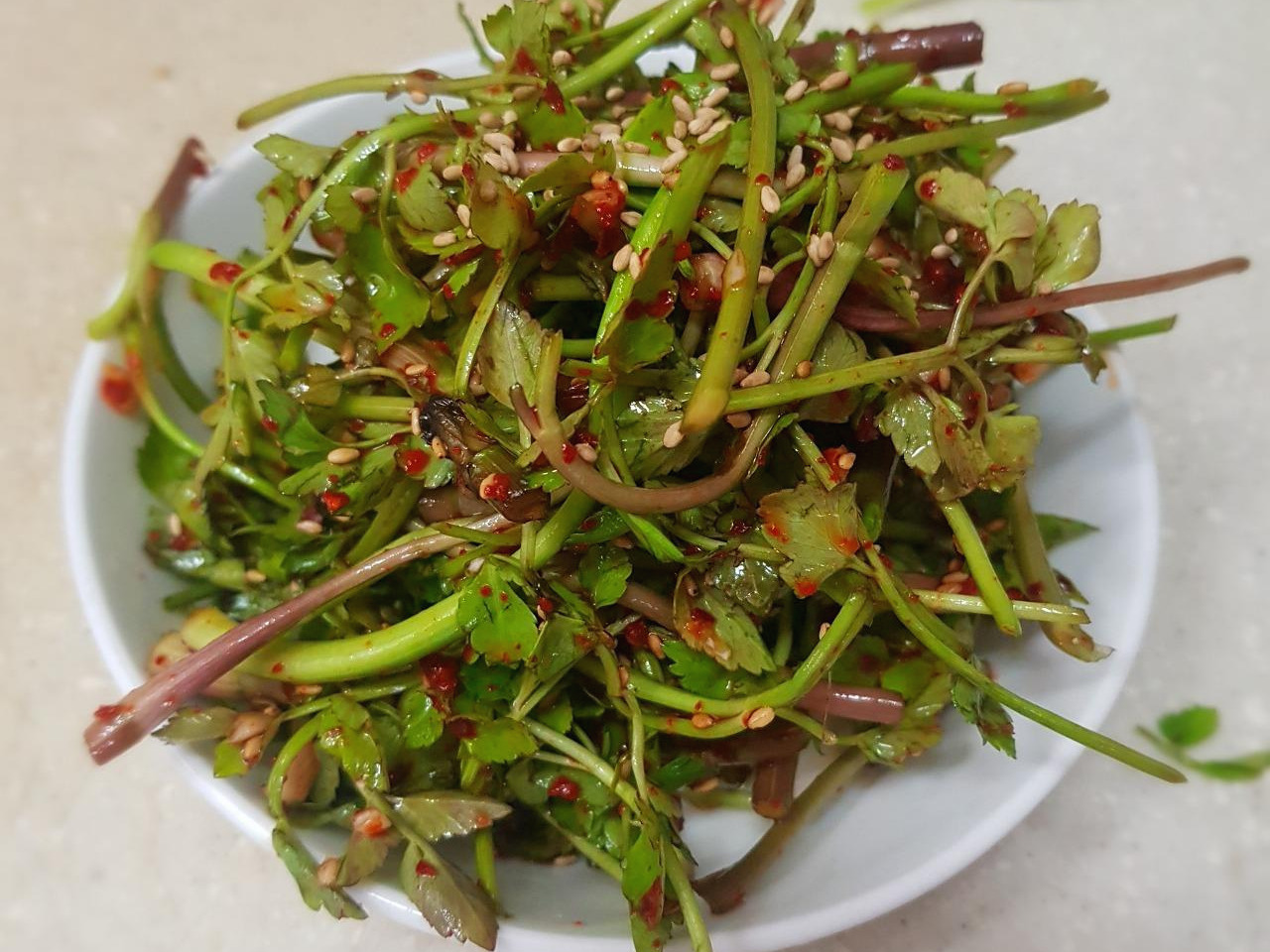 봄에 나오는 연한 미나리로 만든 김치