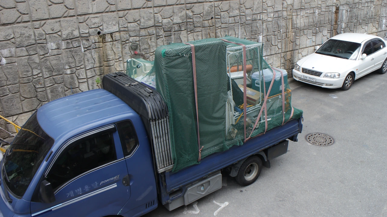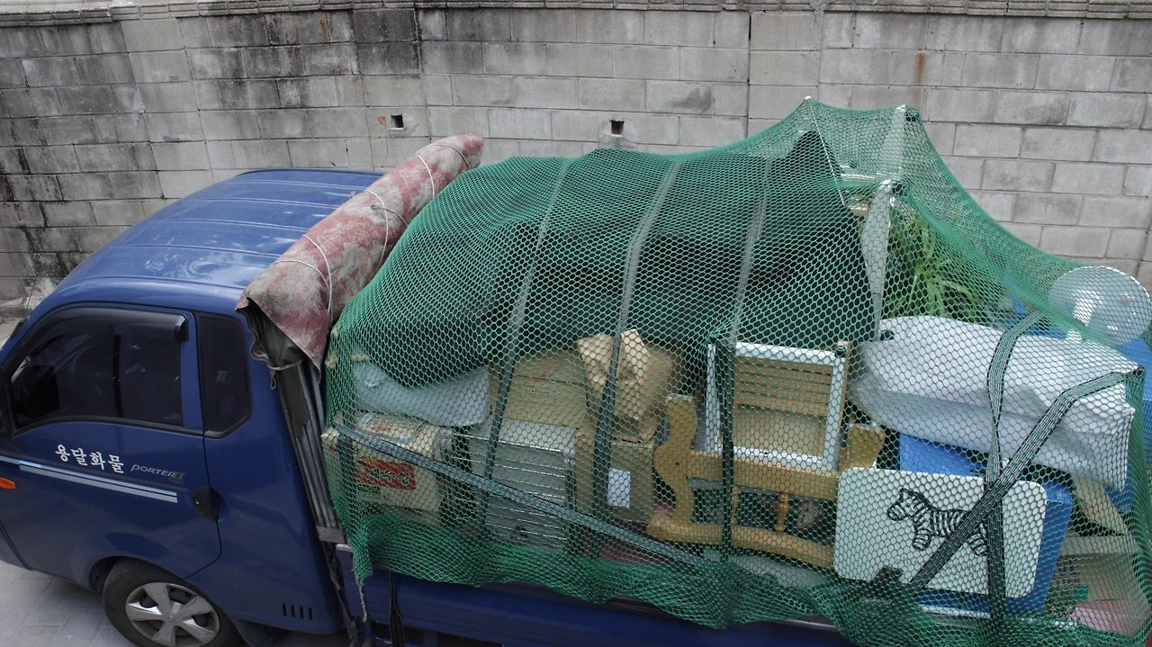 하지만 저 멀리서 오는 트럭을 보는 순간 아차 싶었다. 짐을 잔뜩 채운 트럭이 한 대, 그리고 또 한 대 도착했다. 크고 작은 가구들을 뺀 잔짐만 60박스였다.