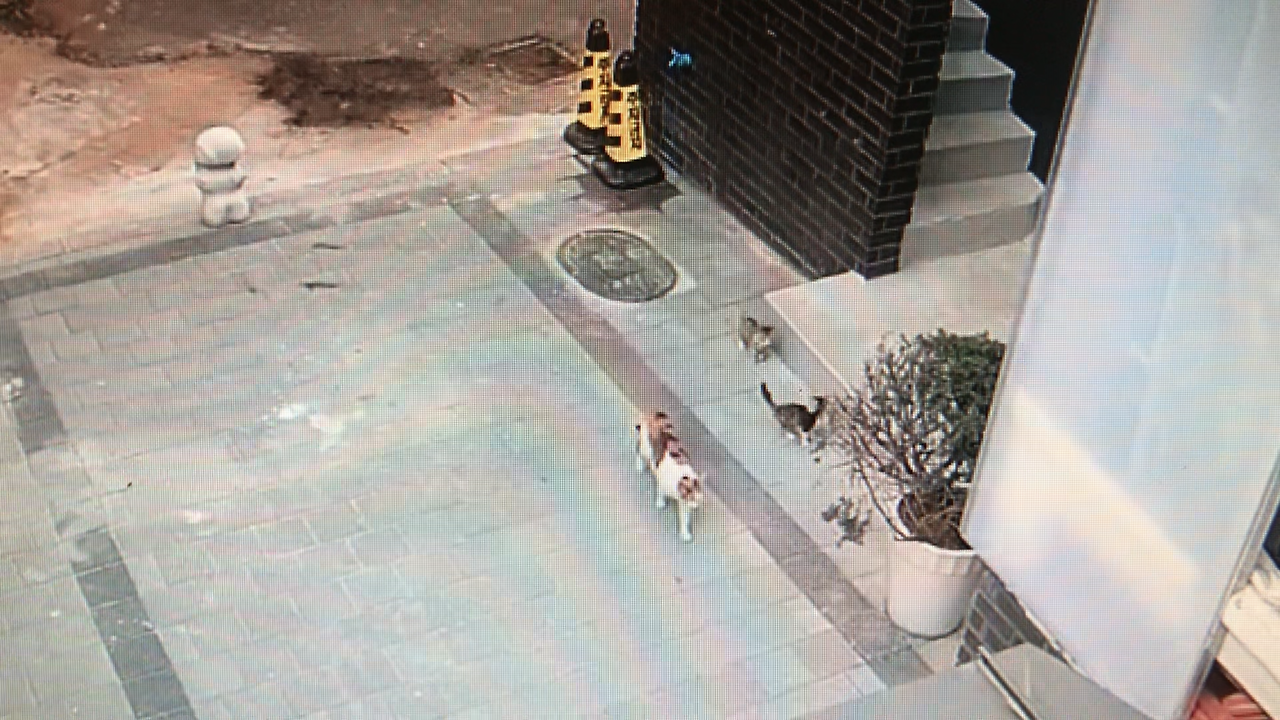 리모델링할 때 보안상 CCTV를 설치해놓고 거의 확인을 안 하고 있다가, 고양이 구경하려고 동생과 CCTV를 확인했다(우리 집 CCTV는 고양이 관찰카메라로 사용되고 있다). J실장님이 집에 들어온 시간으로 CCTV를 돌려보니 고양이 세 마리가 (자기 집인 양) 정문을 통해 당당히 들어왔다. 얼룩이 황토색 고양이와 새끼 두 마리였다. 원래 이 집은 까만 고양이의 구역이었는데 언제부턴가 까만 고양이는 집 옆 공터에서 목격되고, 우리 집에는 황토색 점박이 고양이와 그의 새끼들이 활개 치기 시작했다. 황토색 점박이 고양이가 쿠데타를 일으켰고, 승리를 한 것으로 추정되었다(동물의 세계란 냉혹했다).