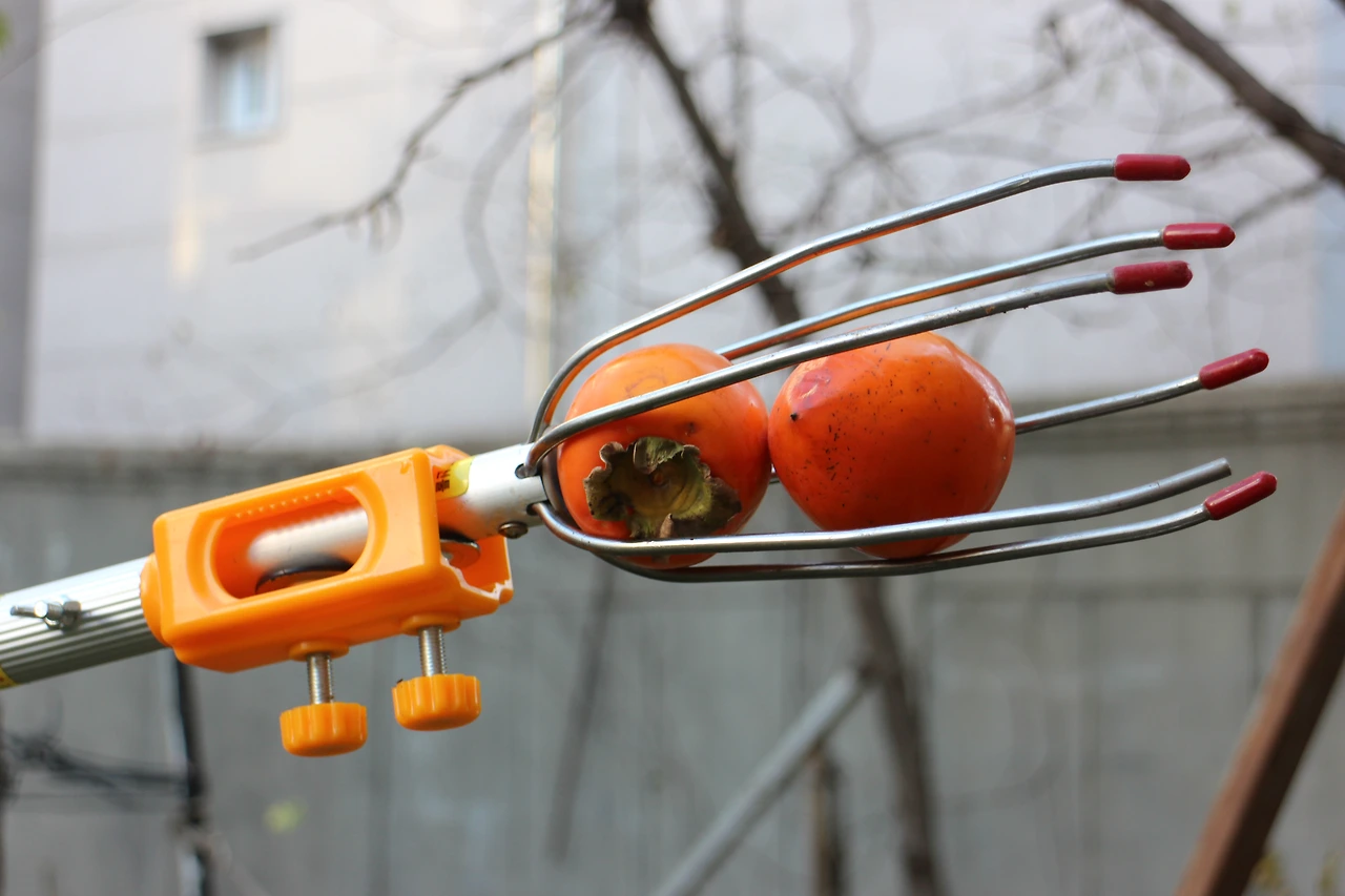 휴일 매우 즉흥적으로 시작된 감 따기였으므로 우리는 잠옷 차림이었다. 오래전에 배송 왔지만 택배 상자 그대로 방치해놓았던 5미터짜리 감 장대도 조립했다. 담을 넘기 위해 사다리도 설치 완료.