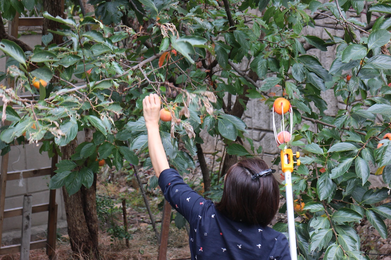 '이번에는 뭘 해볼까' 꼼지락대던 우리의 레이더망에 창밖의 감나무가 포착되었다.