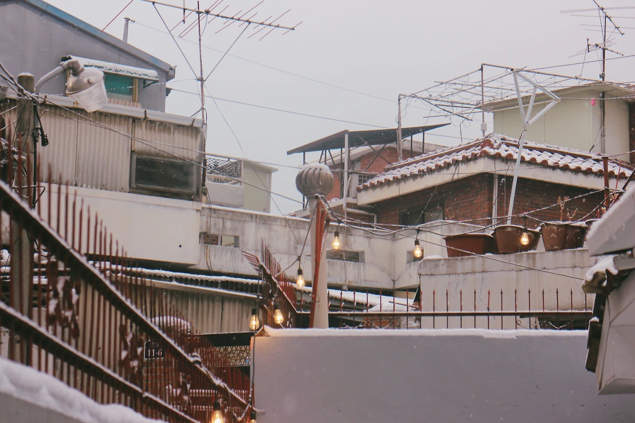 하지만 추운 겨울에도 낭만은 있었다. 어둑해지는 밤이면 어묵탕을 가득하게 끓여 마치 실내포장마차 같은 분위기로 술잔을 기울였다. 적당히(?) 술기운이 올라오고 서로의 사는 이야기로 분위기가 차올라 공기도 뺨도 후끈해지면 마당에 잠시 나가 차가운 공기로 열을 식혔다. 그때의 시원하고 차디찼던 밤공기가 참 좋았다. 열을 식히며 마당에서 올려다보던 오래된 서울의 골목, 가로등, 삐뚤빼뚤 겹겹이 쌓여있던 낡은 집들. 그 모든 것들이 이 집의 소소하지만 아름다운 겨울 풍경이었다.