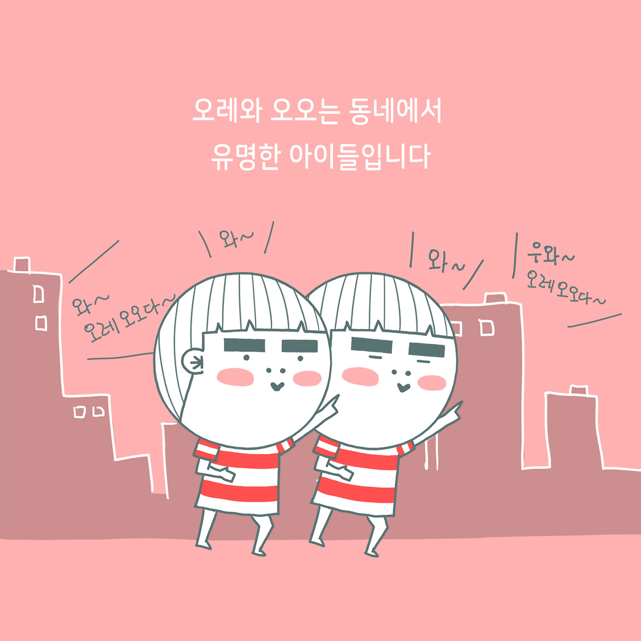 하지만 오레오오가 동네에서 유명한 건 이런 멋진 모습이 아닌 단순히 똑같이 생긴 쌍둥이라는 점이죠.