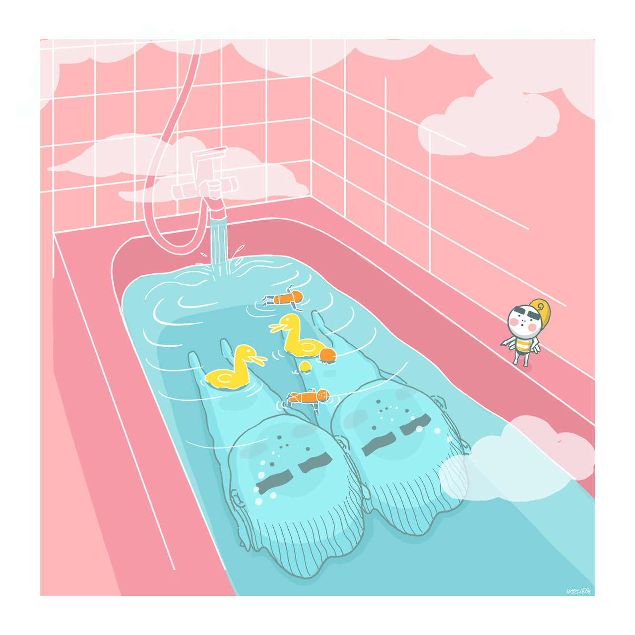 그렇게 욕조의 신비한 모험을 즐깁니다.