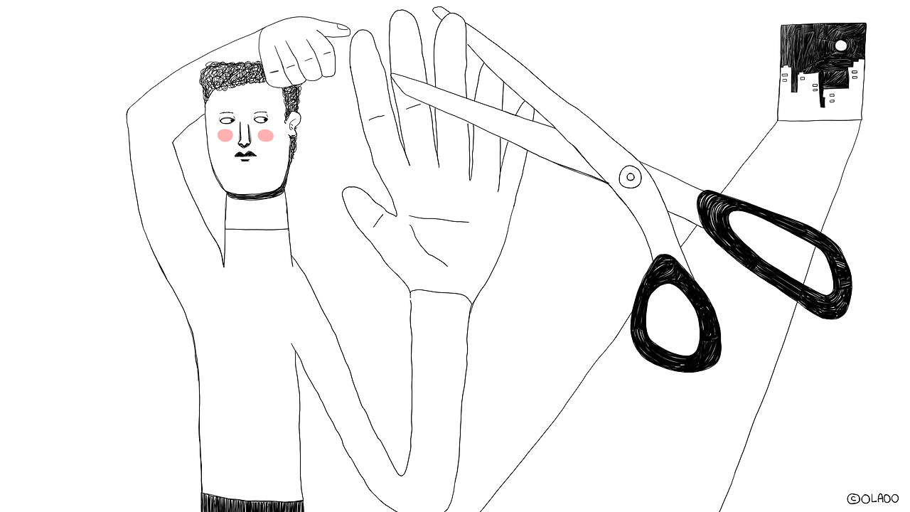 문구함에서 제일 큰 가위를 꺼내서, 숨을 한번 들이쉬고,