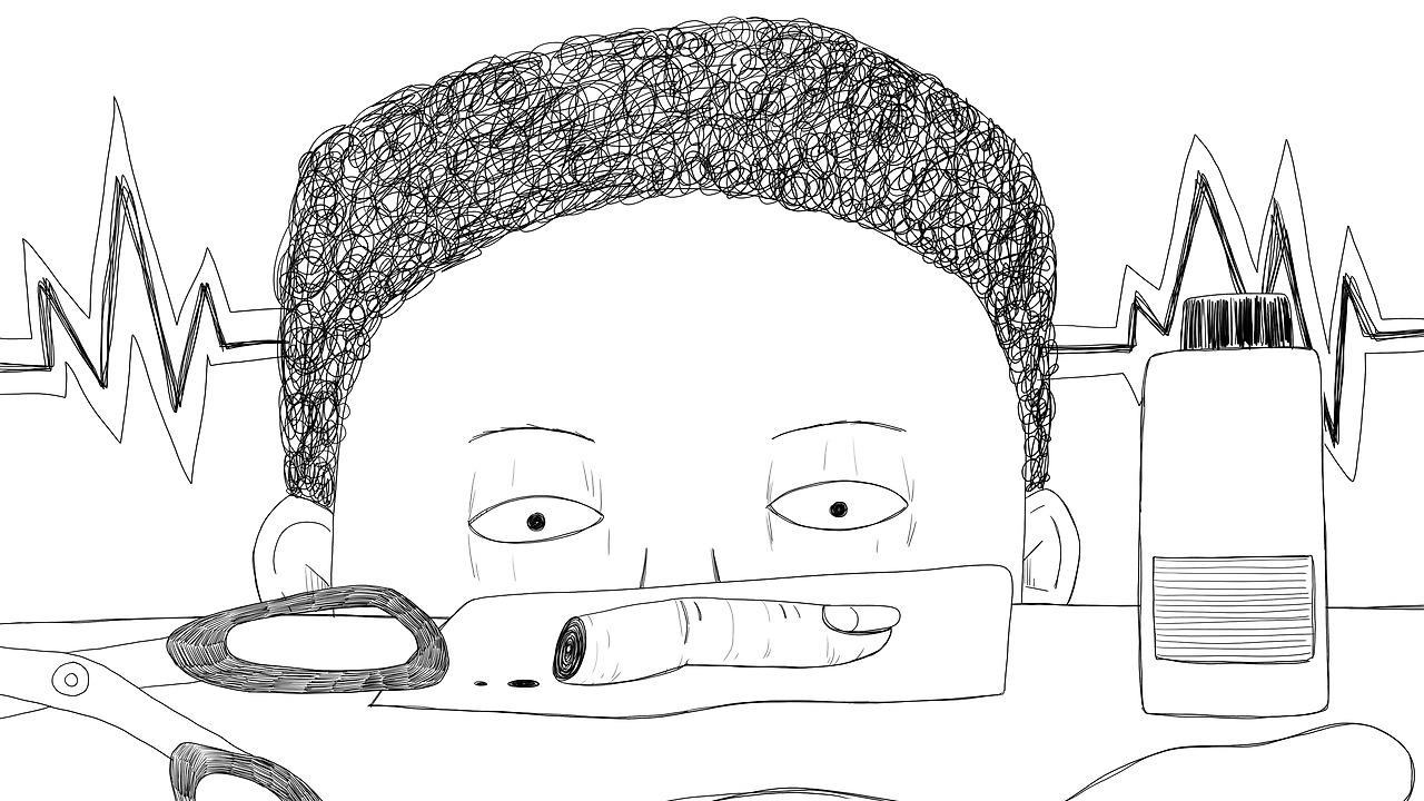 가위를 소독하고,
