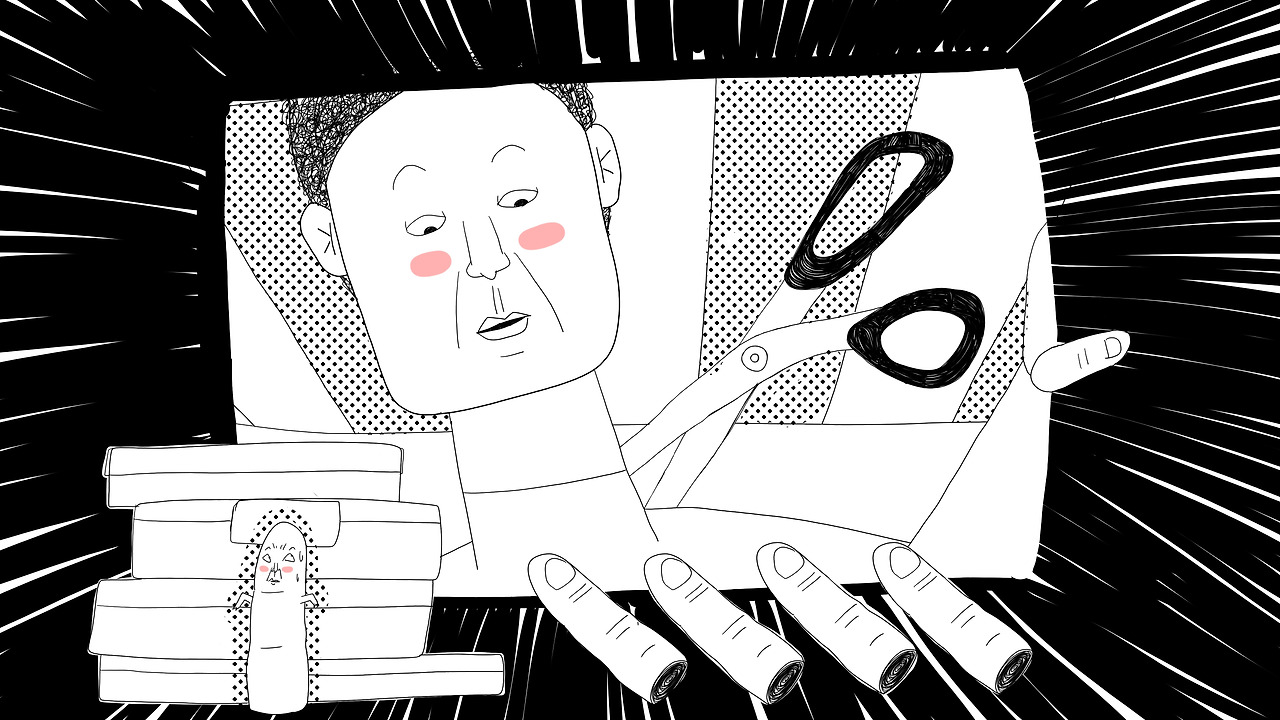 가위가 툭— 하고 바닥으로 떨어졌다.