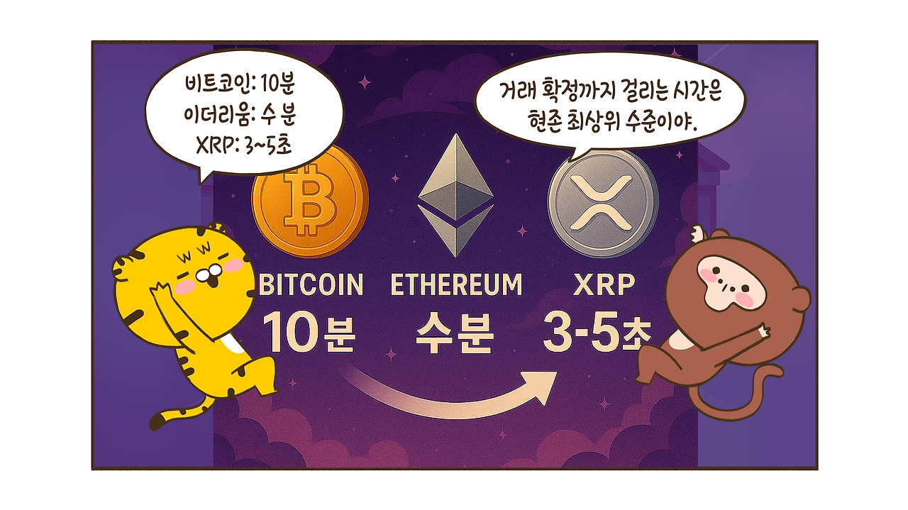 “비트코인: 10분 / 이더리움: 수 분 / XRP: 3~5초”