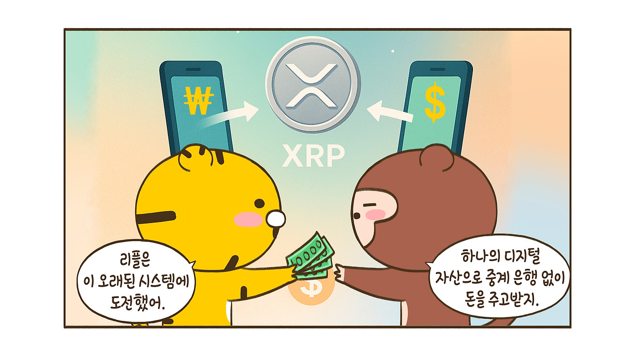 “중간에 XRP를 쓰면 서로 다른 화폐 간의 교환이 즉시 가능해져.”