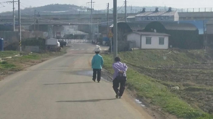 시골에 사시는 할머니 두 분이 걸어서 장에 가신다.