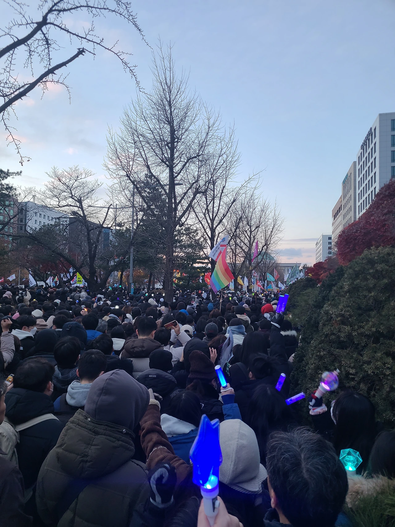 오랜 시간 큰 소리로 외치다 보니, 함께하다 보니 핸드폰이 꺼졌다.