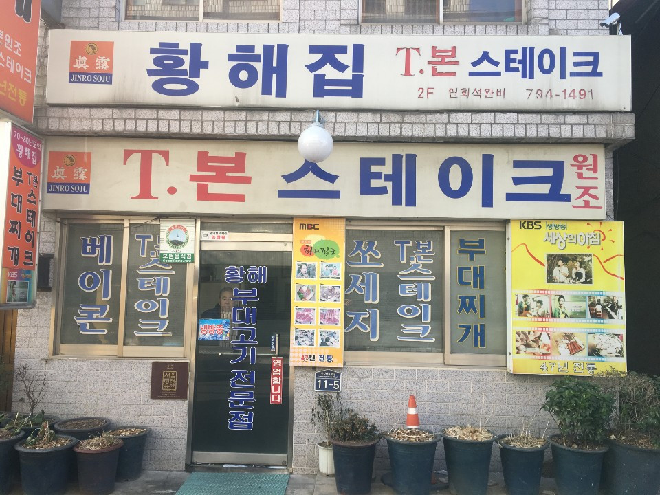혹 청파동에 방문하여 이 한국식 티-본 스테이크를 드실 계획이라면 친구 2명을 섭외해 3명이 가는 걸 추천하고 싶다. 우선 이 스테이크를 1인분 단위로 팔지 않지만, 의정부에서 먹던 부대찌개와 또 다른 부대찌개를 먹을 수 있기 때문이다. 이 동네의 부대찌개는 돼지육수가 베이스가 되어 깊고 구수한 맛이 난다. 의정부 부대찌개와 같이 칼칼한 맛은 없지만 한국식 티-본 스테이크와 청파동 스타일의 부대찌개는 정말 잘 어울린다.