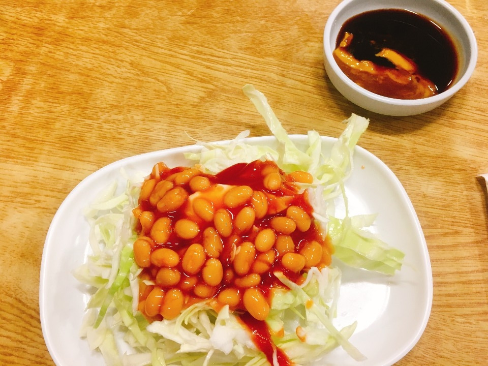 (김치는 없지만 미국식 김치 같은 베이크드 빈과 양상추 샐러드와 소스를 밑반찬으로 주신다. 당연히 리필 가능하다.)
