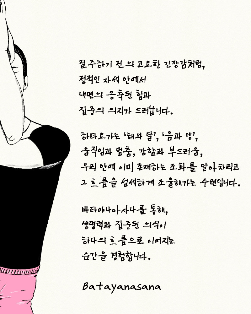 ※ 바타야나아사나는 B.K.S. 아이엥가의《요가디피카》에 수록된 24번째 아사나입니다.