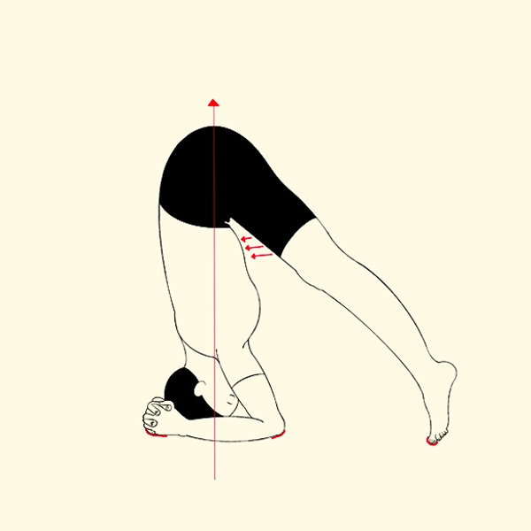 • 정수리 위치 고정 후, 발끝을 세우고 엉덩이를 천천히 들어 올림