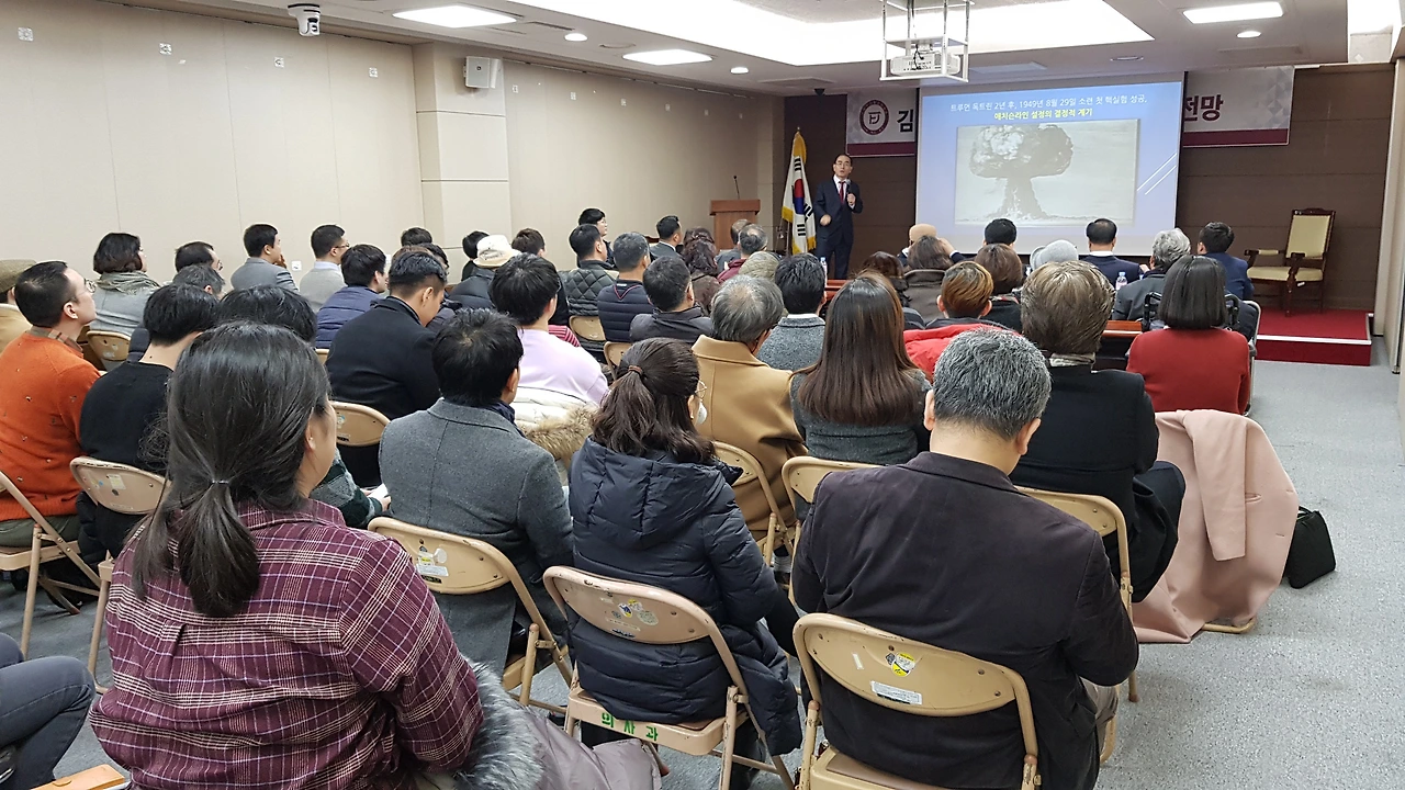 2018년 11월 25일 서울특별시의회 의원회관 2층 제1대회의실에서 “김정은의 핵전략과 한반도의 통일전망”을 주제로 태영호 전 영국주재 북한 공사의 강연이 진행되었다.