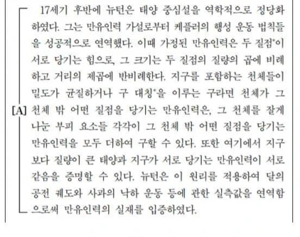 지문없이 보기와 그에 수록된 부분을 보면 만유인력에 대한 사전지식이 필요하지 않나라는 의심을 품을 수 있다. 그 언론은 이를 노린 것이다.