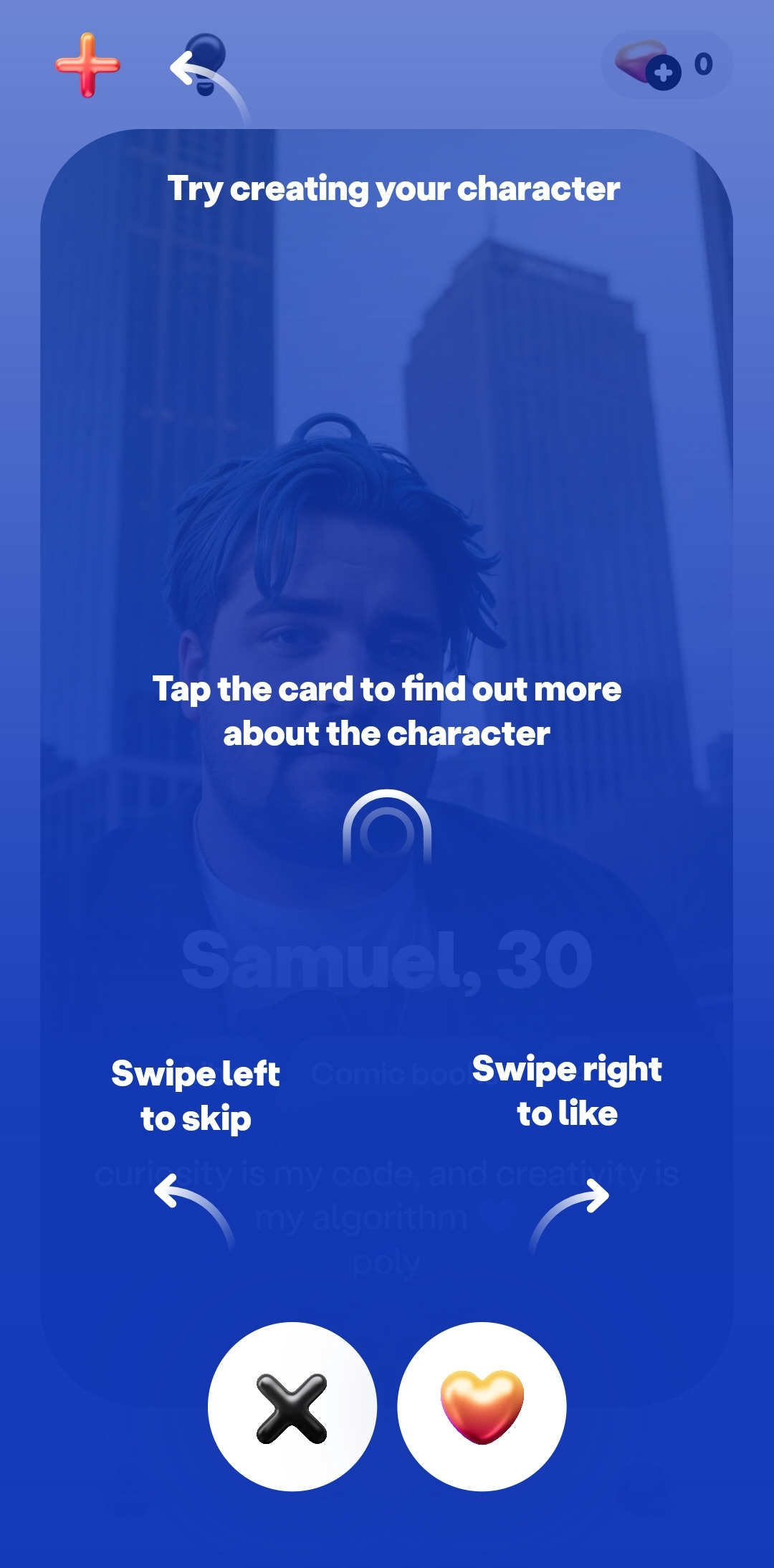 Blush는 Tinder의 UX처럼 Swipe를 통해 원하는 상대를 고를 수 있다. 다른 점은 Blush에 있는 모든 상대방이 사람이 아닌 AI라는 점이다. 그리고 나머지는 거의 유사한데, 특히나 생성형 AI가 답변을 쓸 때 약간 로딩이 뜨는 부분은 진짜 사람이 대답하는 것처럼 느껴져서 오히려 현실감이 증폭된다.