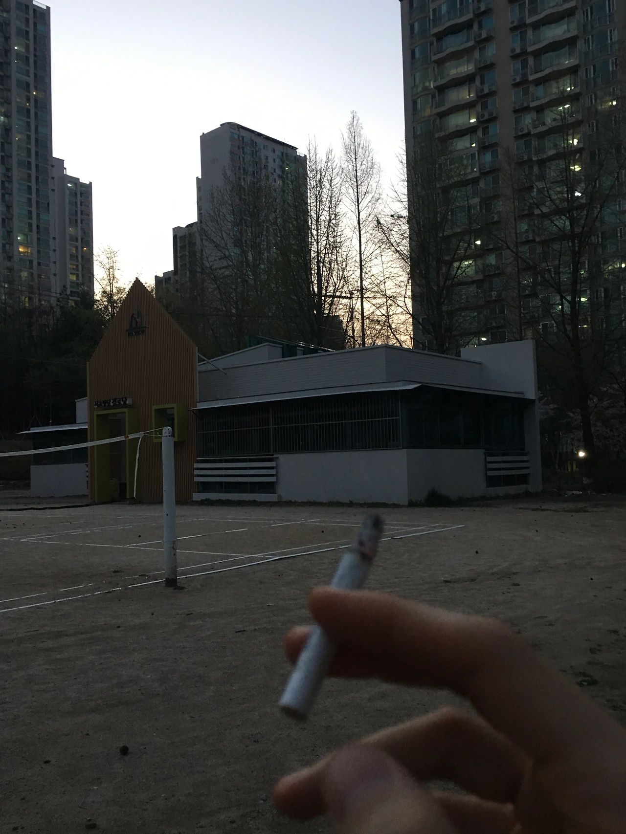 친숙한 동네 공원 벤치에 앉아, 오늘 하루를 곱씹는다. 담배 한 대와 함께