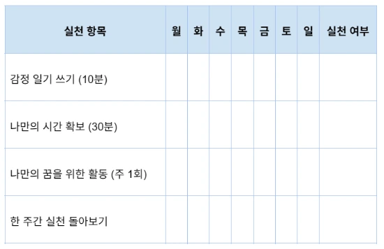 아래 체크리스트를 매일/매주 점검하여 자신의 실천 상황을 확인해보세요.