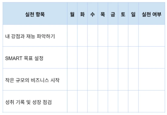아래 체크리스트를 통해 자신의 경제적 독립과 자아 실현 과정을 점검해보세요.