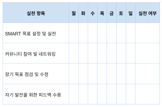 방법: SMART 목표를 설정하고, 이를 달성하기 위한 실천 계획을 세웁니다.