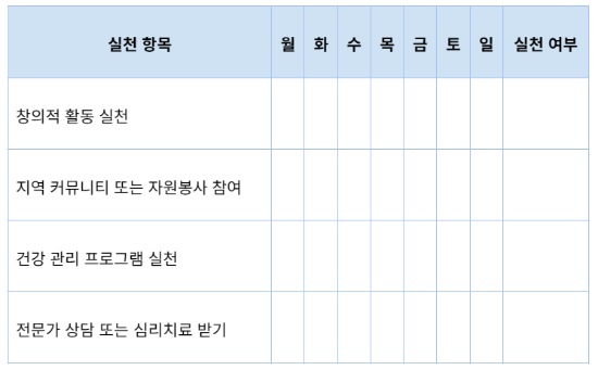 심리적 변화 기록: 활동 후 느끼는 감정 변화를 기록.