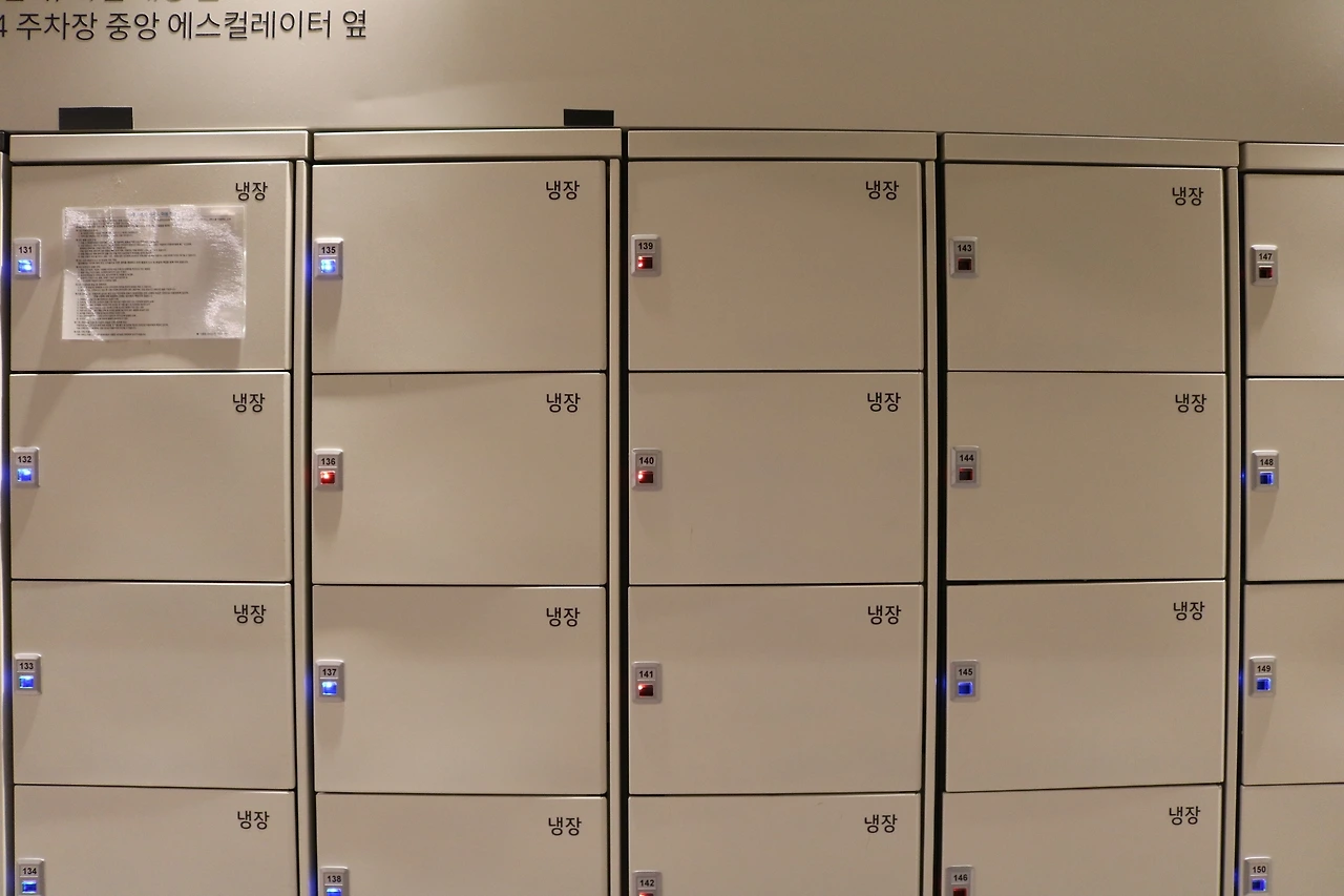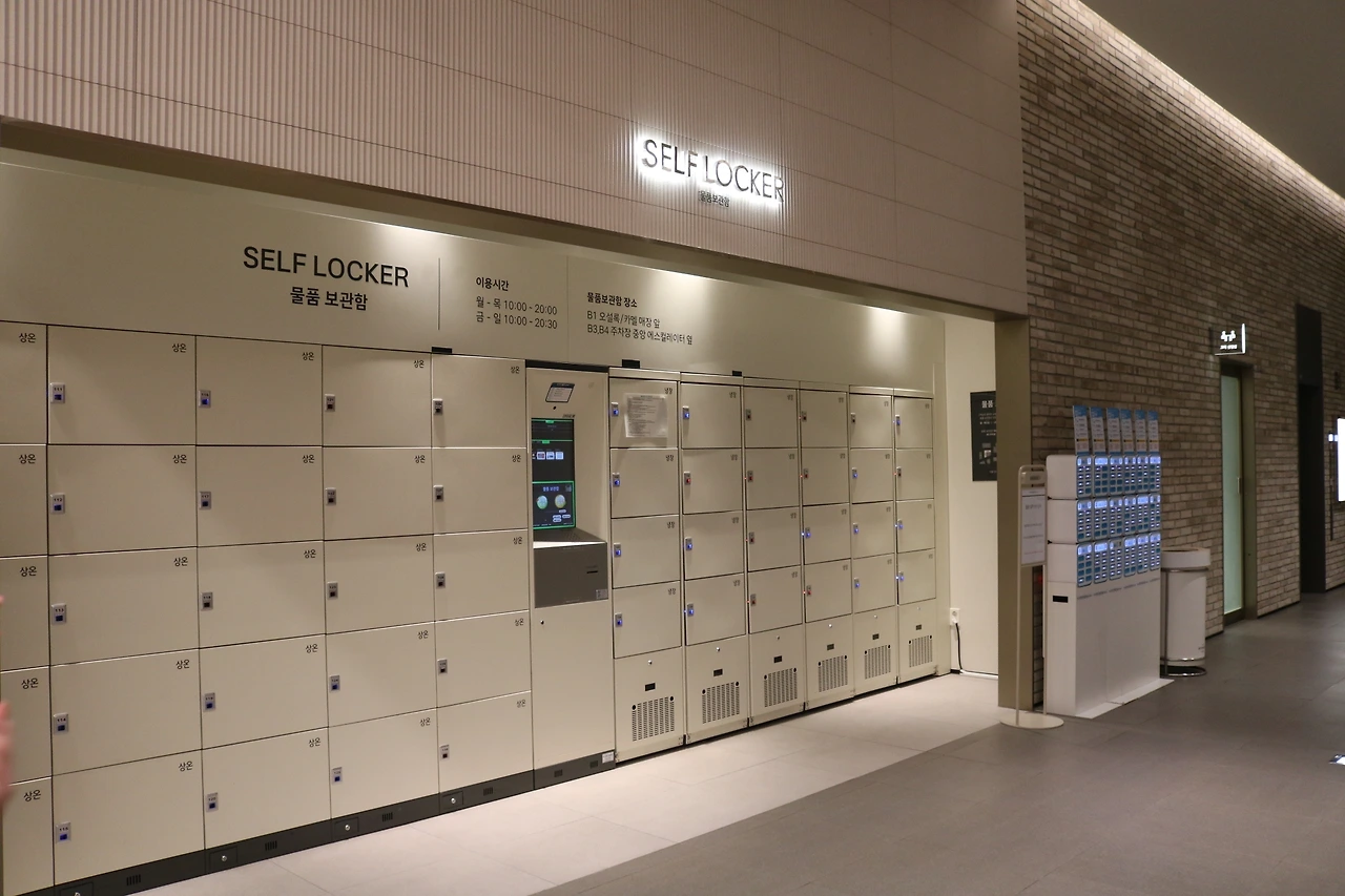 다른 쇼핑몰에도 있는 락커인데요. 하지만 여기서 다른 점은 '냉장 사물함'이 있다는 점이에요. 식품관 층에 있는 사물함답게 구매한 식품류가 있다면 안전하고 시원하게 보관할 수 있도록 냉장 사물함을 무료로 제공하고 있어요.