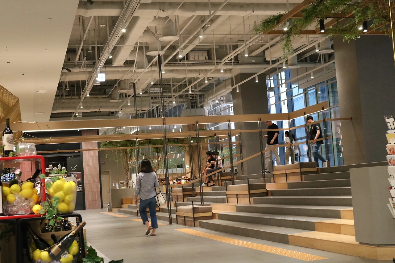 그리고 지하에도 이런 공간이 있어요. 지하 1층 가장 사이드에 위치했는데요. 백화점을 쉼의 공간으로 바꾸려는 더현대서울을 시도가 잘 드러나는거 같아요