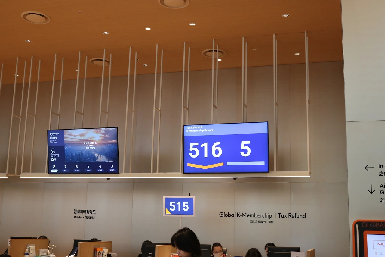고객센터 전광판이 두 종류로 나눠져있어 왜 그렇지? 하고 보니 외국인 고객을 위한 창구는 더 직관적인 안내를 하고 있었어요. 창구 전광판에 많은 안내를 써두기보다는 본인 표 번호만 알고 직원을 통해 직접 해결하려는 모습이 보였어요. 외국인 고객 입장에서도 더 명확하고 편리하겠네요.