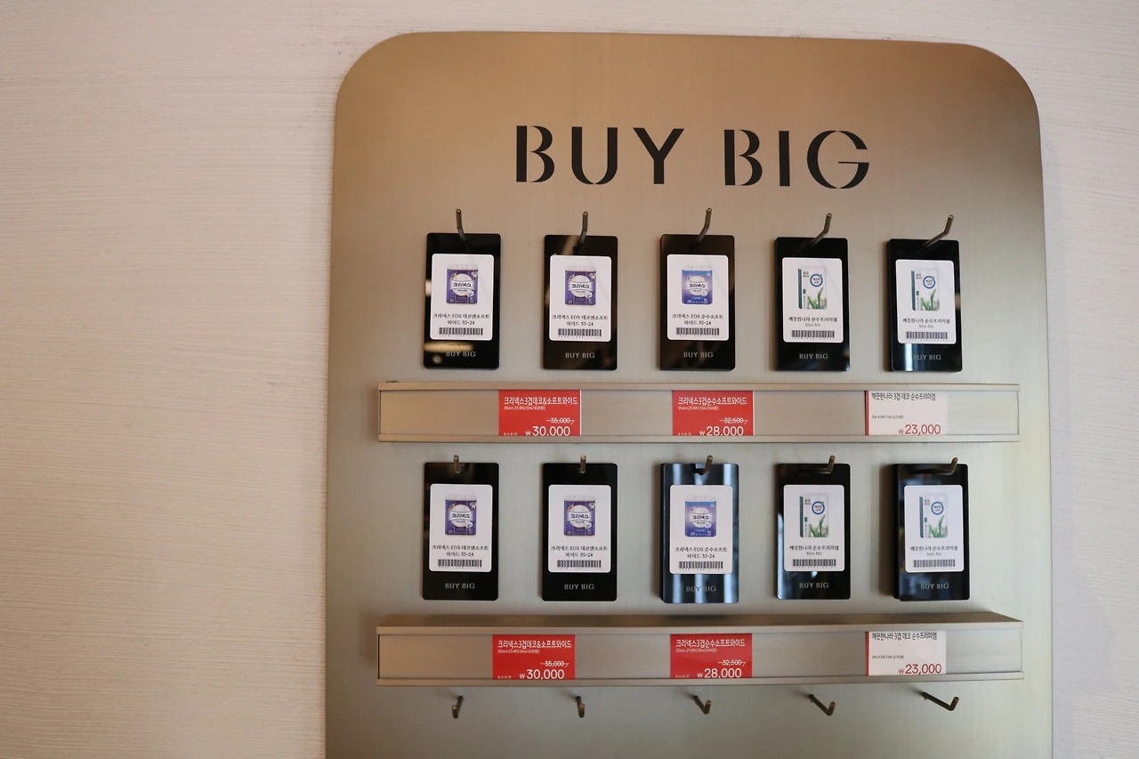 휴지나 생수와 같이 큰 부피의 상품을 구매할때 해당 상품을 직접 카트에 들고가지 않고 택만 가져가서 결제할 수 있는 시스템. 평소 마트에서 장을 볼때면 정말 번거롭다고 느꼈던 부분인데, 이렇게 쉽게 풀어내다니 너무 좋았어요. 카운터에 가서 해당 택을 내고 결제하면 해당 물품을 제공해주는 것 같습니다.