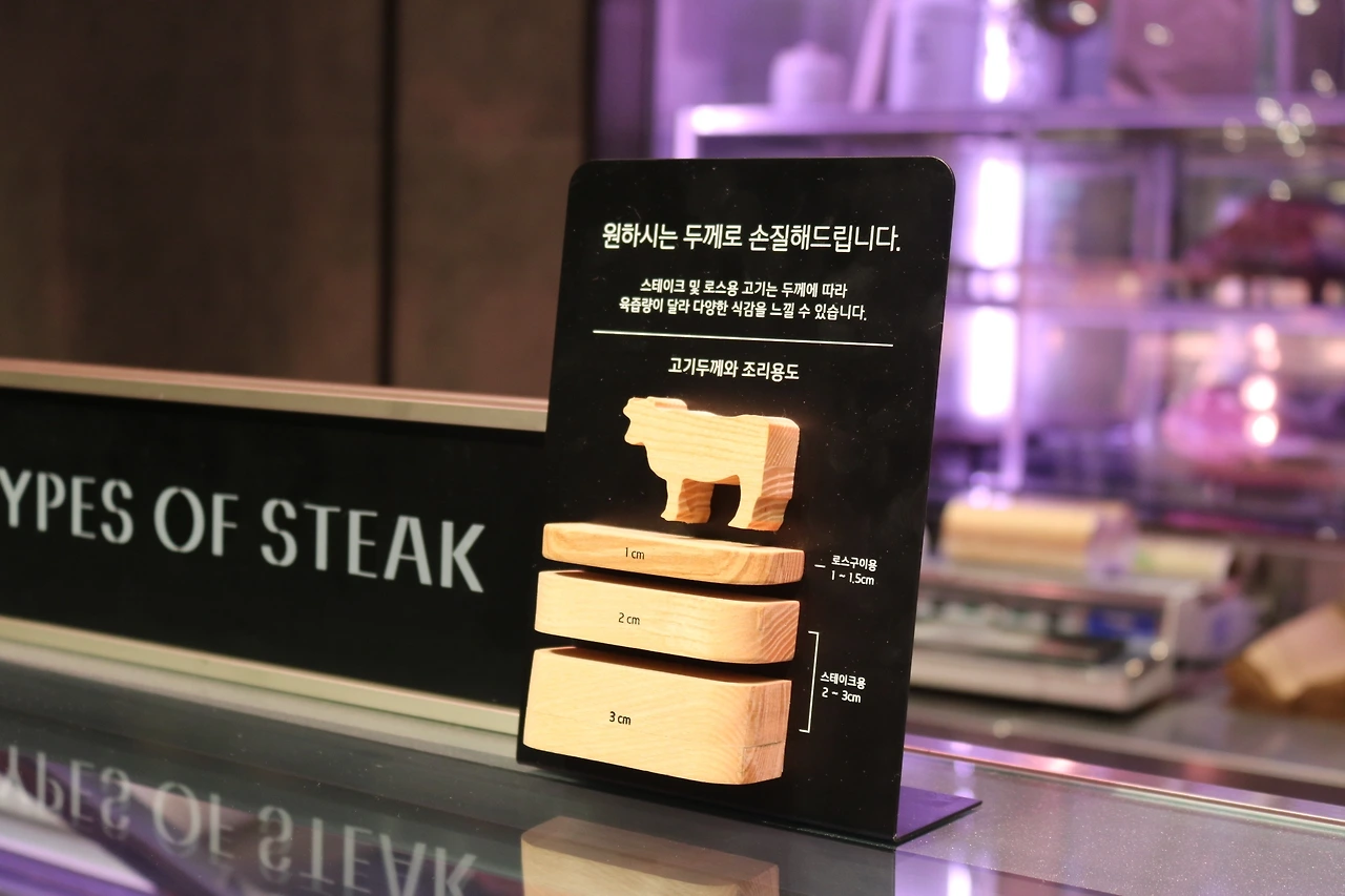 어느정도 두께로 잘라드릴까요? 라는 물음에 당황하지 않고 파악할 수 있어요. 두께도 시각적으로 표시하면서 옆에 두께별 조리 용도도 함께 기재해두어 아주 편리해요.