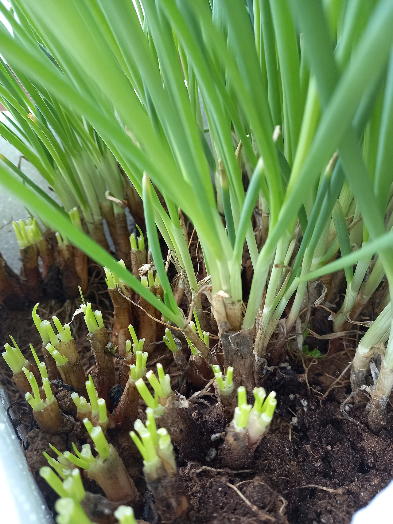 햇빛을 잘 받고 쪽파가 많이 자랐다