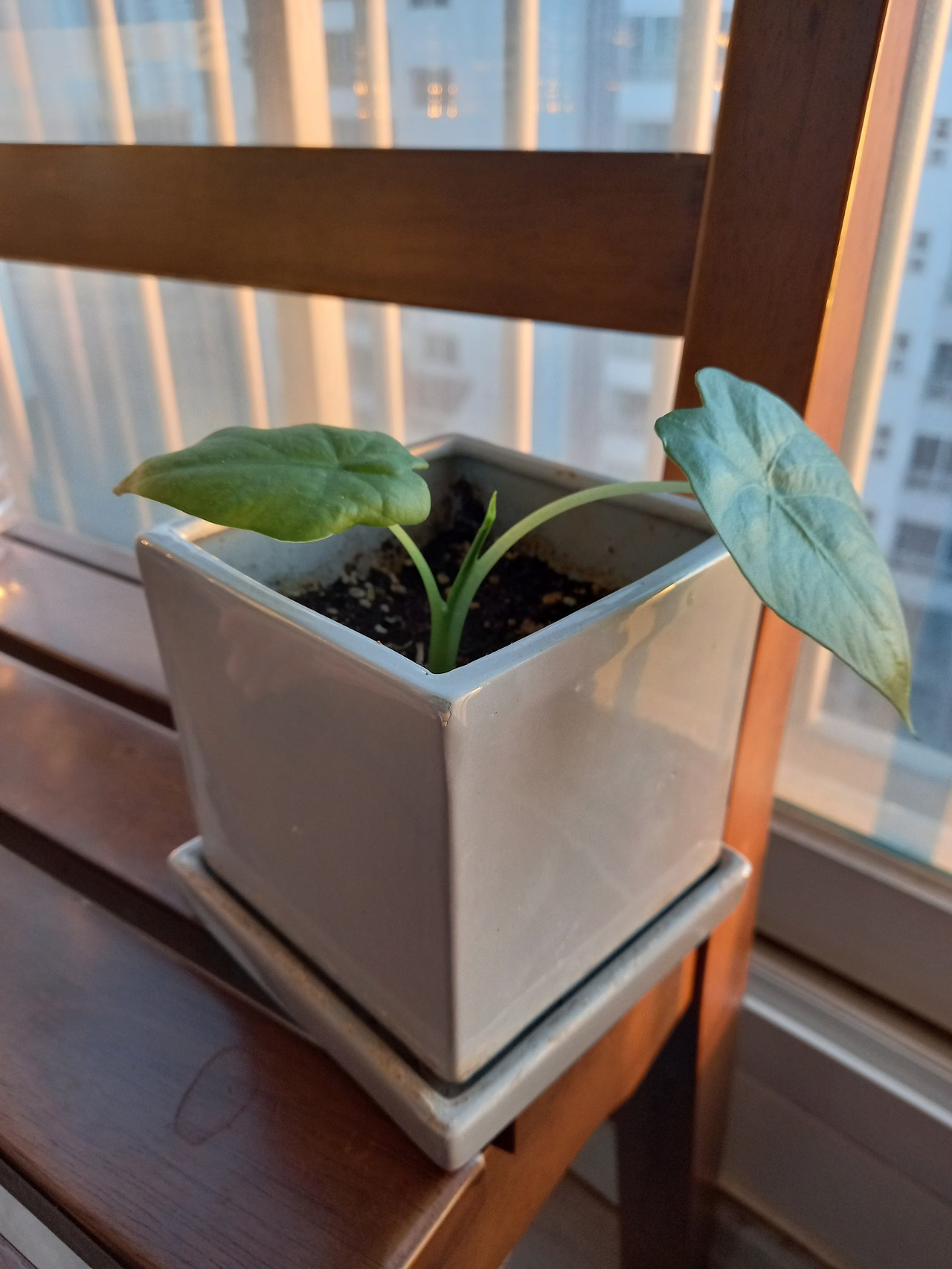 나는 큰 것 하나 작은 새끼 하나를 부모님께 얻어서 가지고 왔다. 집에 오자마자 화분에 옮겨 심어주었는데 며칠 동안은 시들해서 잘 살아날지 걱정을 했지만 이내 줄기와 잎에 힘이 생기더니 뿌리를 잘 내린 것으로 보였다. 한 달 정도가 지나자 새로운 잎도 나오기 시작하고 지금은 화원에서 사 온 식물처럼 싱싱하게 잘 자라고 있다. 지금도 알로카시아를 보면 밭에서 캐오던 때가 기억난다. 다른 잡초에게 살짝 미안한 생각이 들던 것도 어쩔 수 없이 잘 자라는 알로카시아를 보면 뿌듯하기만 하다.