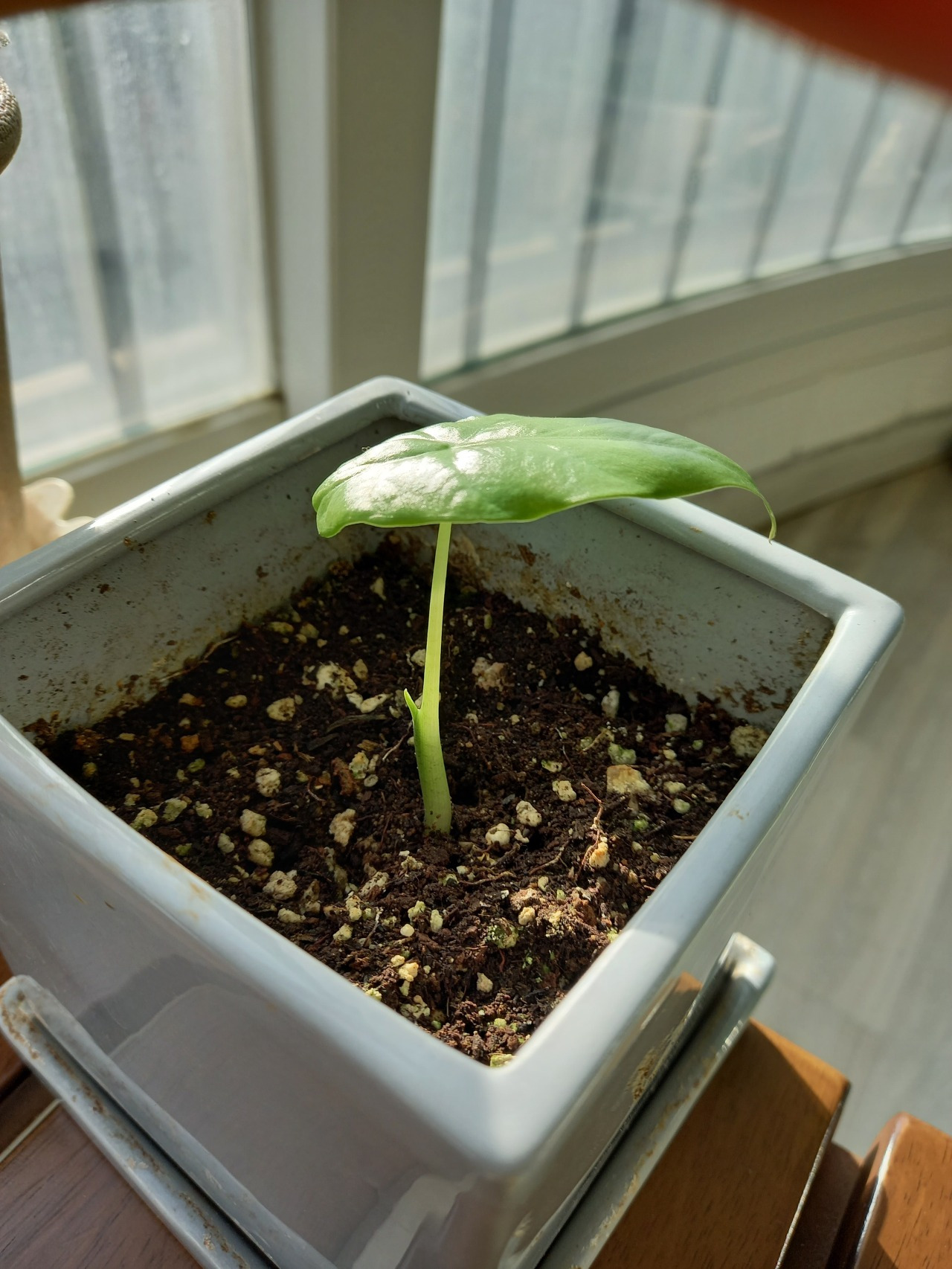 사연은 이랬다. 대략 7~8년 정도 전에 부모님 집에서 집들이를 하는데 손님 한 분이 알로카시아 화분을 사 오셨다. 부모님께서는 그 식물이 알로카시아라는 것도 모르셨지만 식물이 크고 멋있어서 좋아하셨다. 알로카시아를 집안 거실에서 잘 키우고 계셨는데 어느 날부터인지 잘 자라지 않고 시들기 시작해서 거실에서 가져와서 옥상으로 올라가는 중간계단에서 키워보셨다. 그렇게 1~2년을 거기서 잘 키워오셨는데 어느 날 보니 알로카시아가 죽어버려서 하는 수 없이 화분을 밭의 한편에 쏟아놓으셨다.