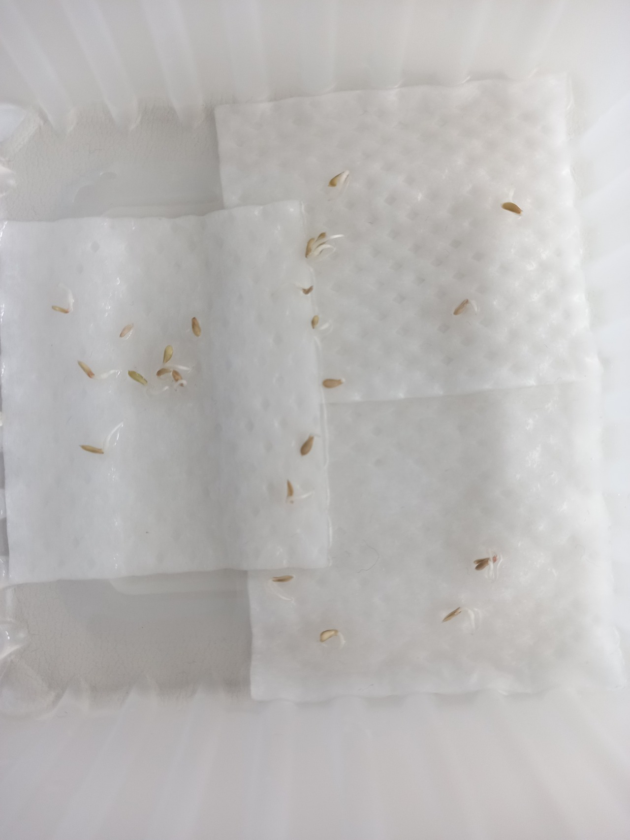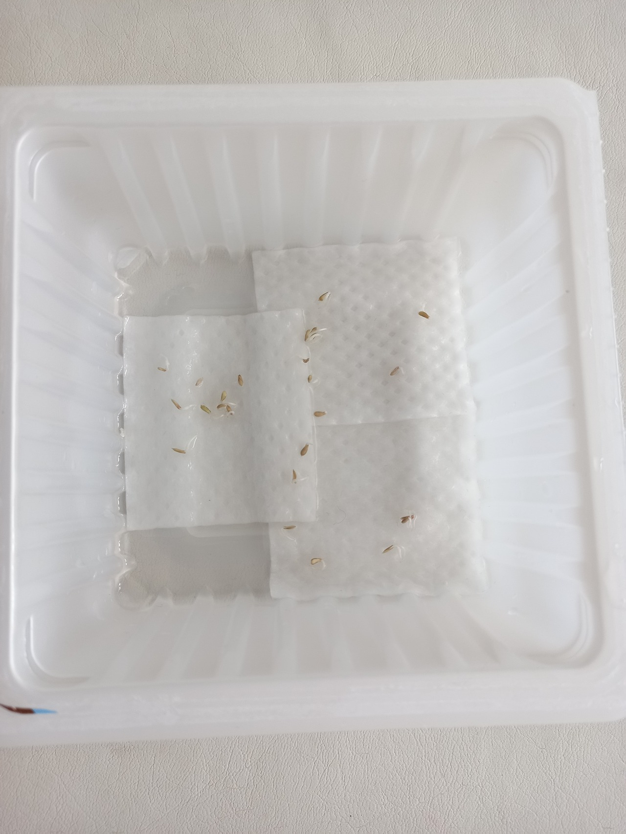 지난 주말에 사 온 상추 씨앗을 드디어 심어 보기로 했다. 파종 시기는 3월로 나와 있었지만 테스트 겸 미리 심어 보기로 했다. 온도를 높여서 키우면 더 잘 자라는지에 대해서 알고 싶었다. 1000여 개의 씨앗 중 대략 20개의 씨앗의 싹을 틔워보기로 했다. 마트에서 사 온 두부가 담긴 플라스틱 용기에 화장솜을 3장 깔고 씨앗을 올려놓았다. 여기서 중요한 것은 물을 주되 씨앗이 둥둥 떠다닐 정도로 물을 주어서는 안 된다는 것이다. 물이 화장솜을 다 적시 되 잠겨서 올라오지 않을 정도로만 줘야 하고 절대로 물이 말라서는 안된다. (이 방법은 내가 예전에 영국에서 살았을 때 알고 지내던 영국 아저씨로부터 배운 것으로 아저씨께서는 해바라기 씨앗을 이 방법으로 발아하여 새싹을 잘 키우셨고 내게 새싹 하나를 주셔서 나는 해바라기 꽃으로까지 피워냈다.)