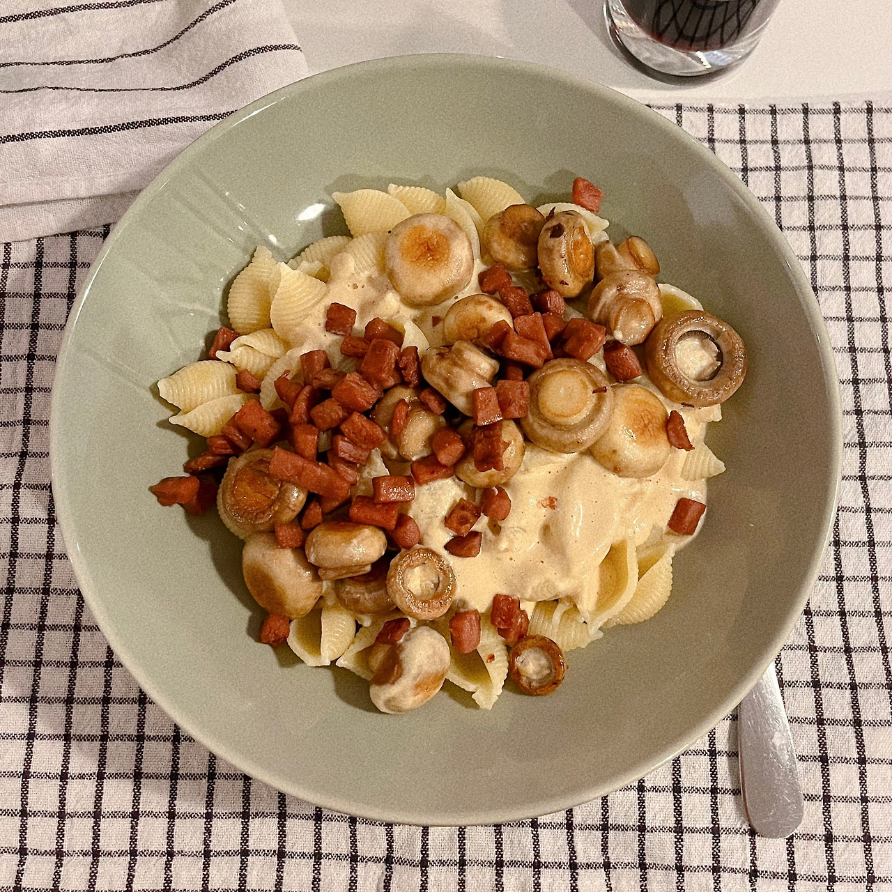 그렇게 장 본 재료와 함께 집으로 돌아와 뚝딱뚝딱 20분 정도 주방에 있더니, 식탁에 앉으라고 나를 불렀다. 테이블에 놓여진 까르보나라는 그 외모와 향기부터 환상적이었다. (진짜 놀랬었다!)
