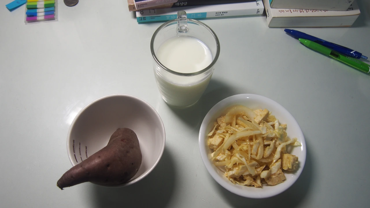 - 저녁: 방울토마토, 바나나, 고구마, 두부 중 택