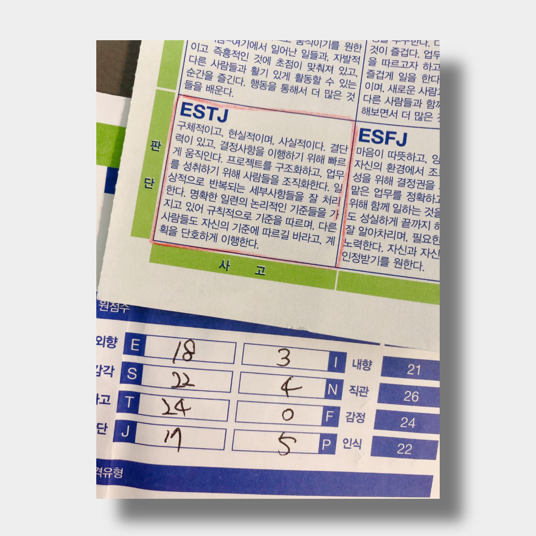 참고로 나는 극단적 ESTJ 성향으로 감정보단 이성이 굉장히 우세적인 사람이다.