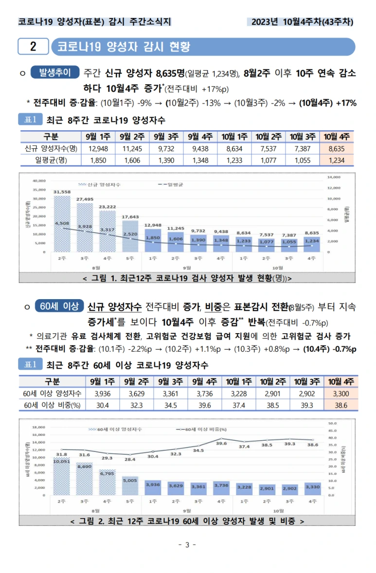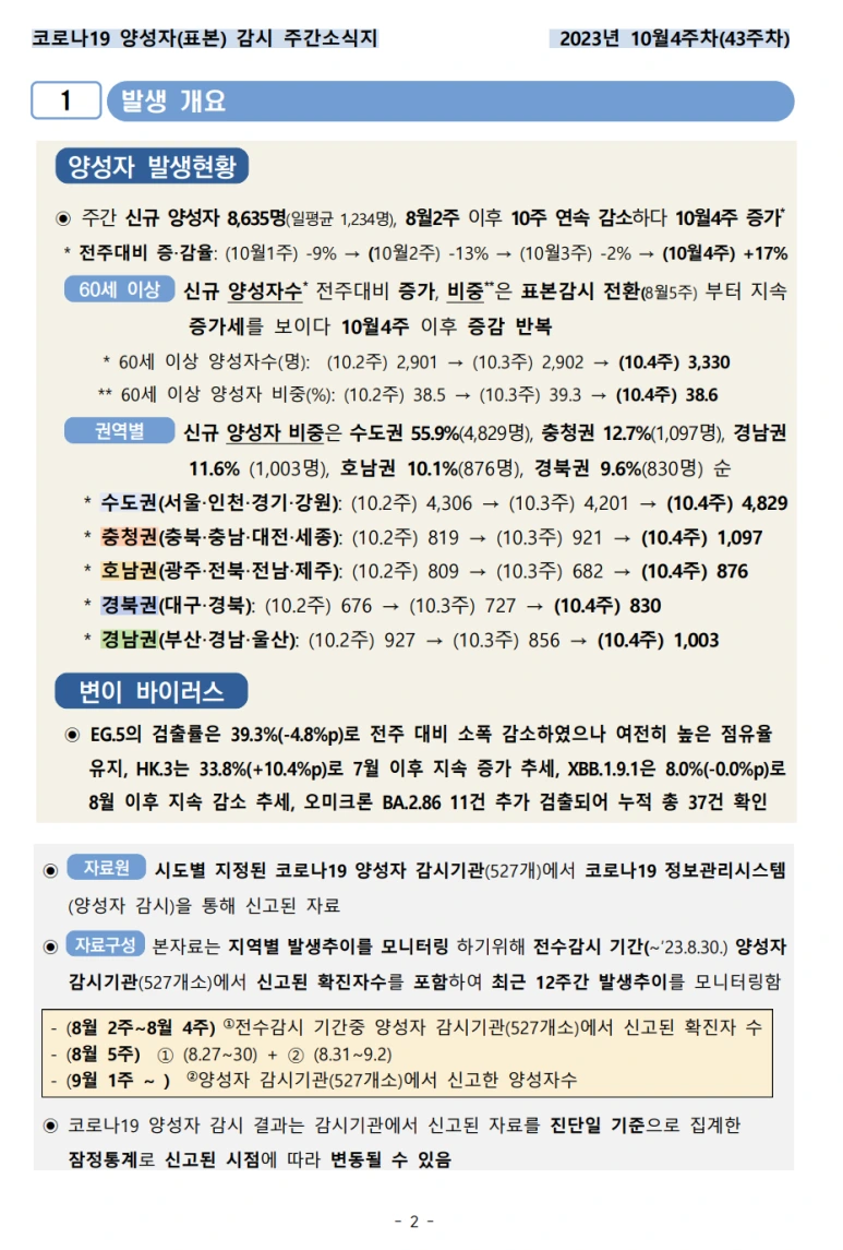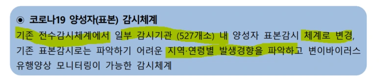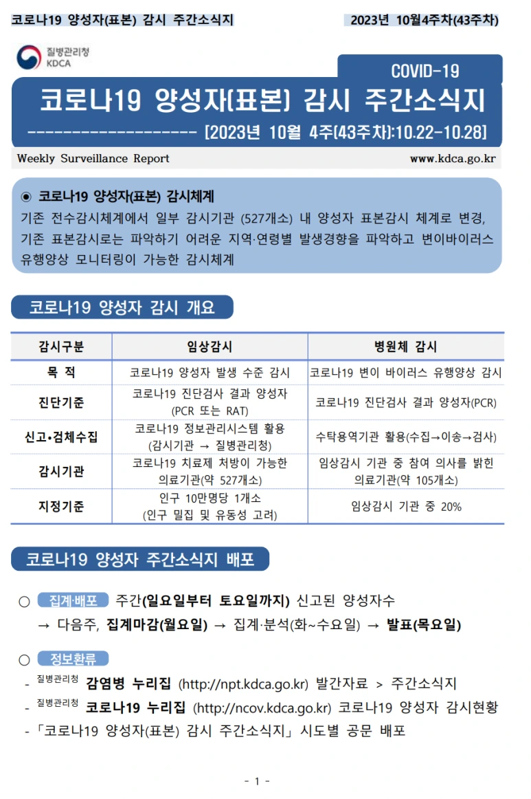 요즘은 확진자수를 매일 보도하지는 않고, 주간 소식지로 바뀌었네요. 감시체계도 전수감시체계에서, 일부 감시기관내 양성자 표본감시 체계로 변경되었다고 해요. 통계 기준이 바뀌었으니, 데이터만 보고, 늘었다, 줄었다 판단하는데 오류가 있을 수 있다는 점 기억하면 좋겠죠?