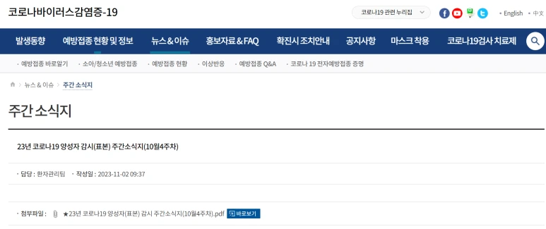 이 기사들의 원문 출처는 '질병관리청' 홈페이지에서 나온 데이터들입니다. 그럼 원문을 확인해 봐야겠죠?