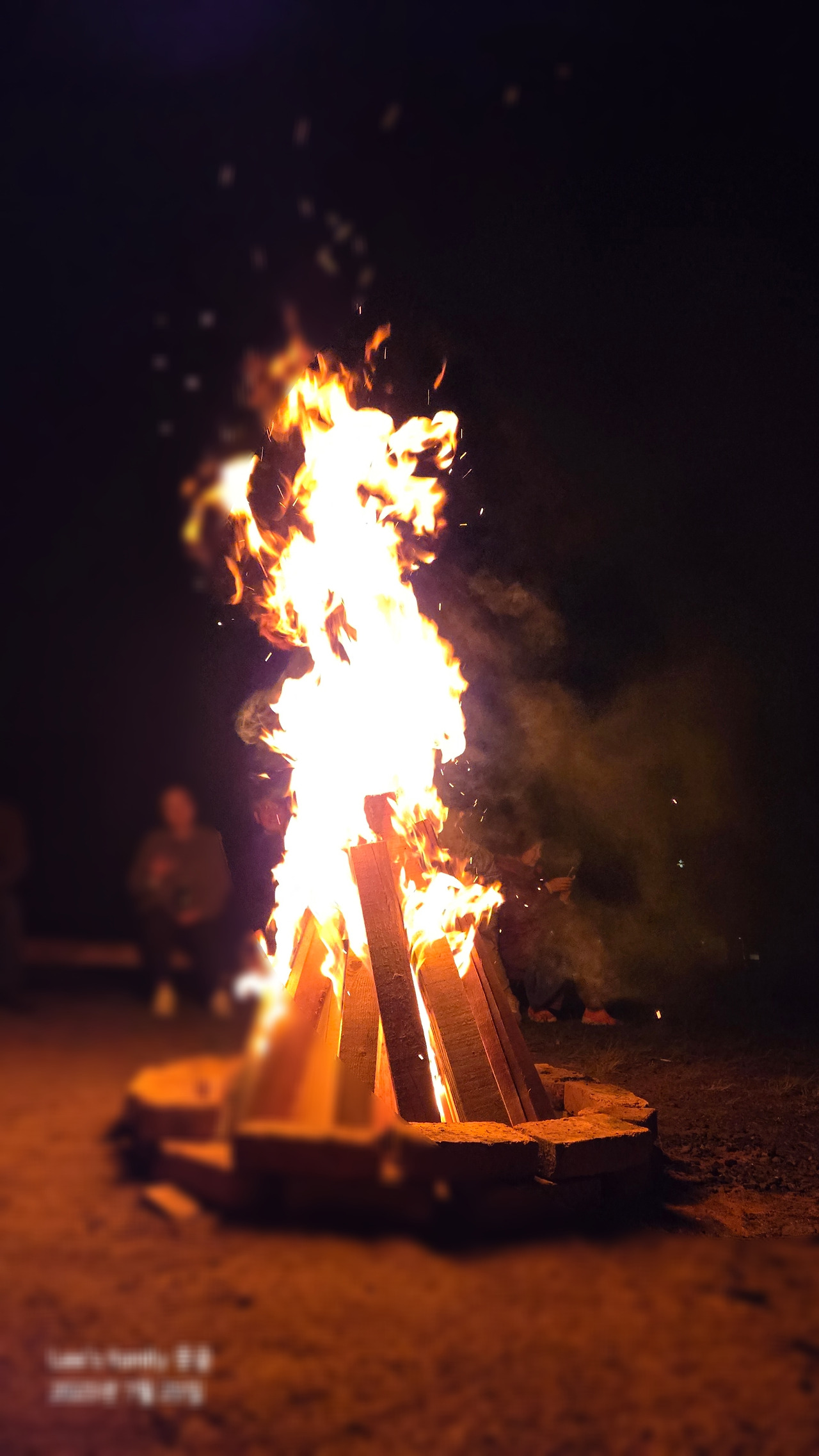 숙소 뒤에 모닥불을 피우고 별을 보고 있다.