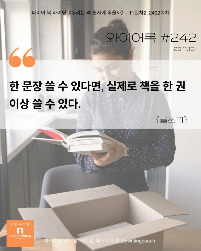 한 문장 쓸 수있다면, 실제로 책을 한 권 이상 쓸 수 있다. - 와이어록 242 {글쓰기}