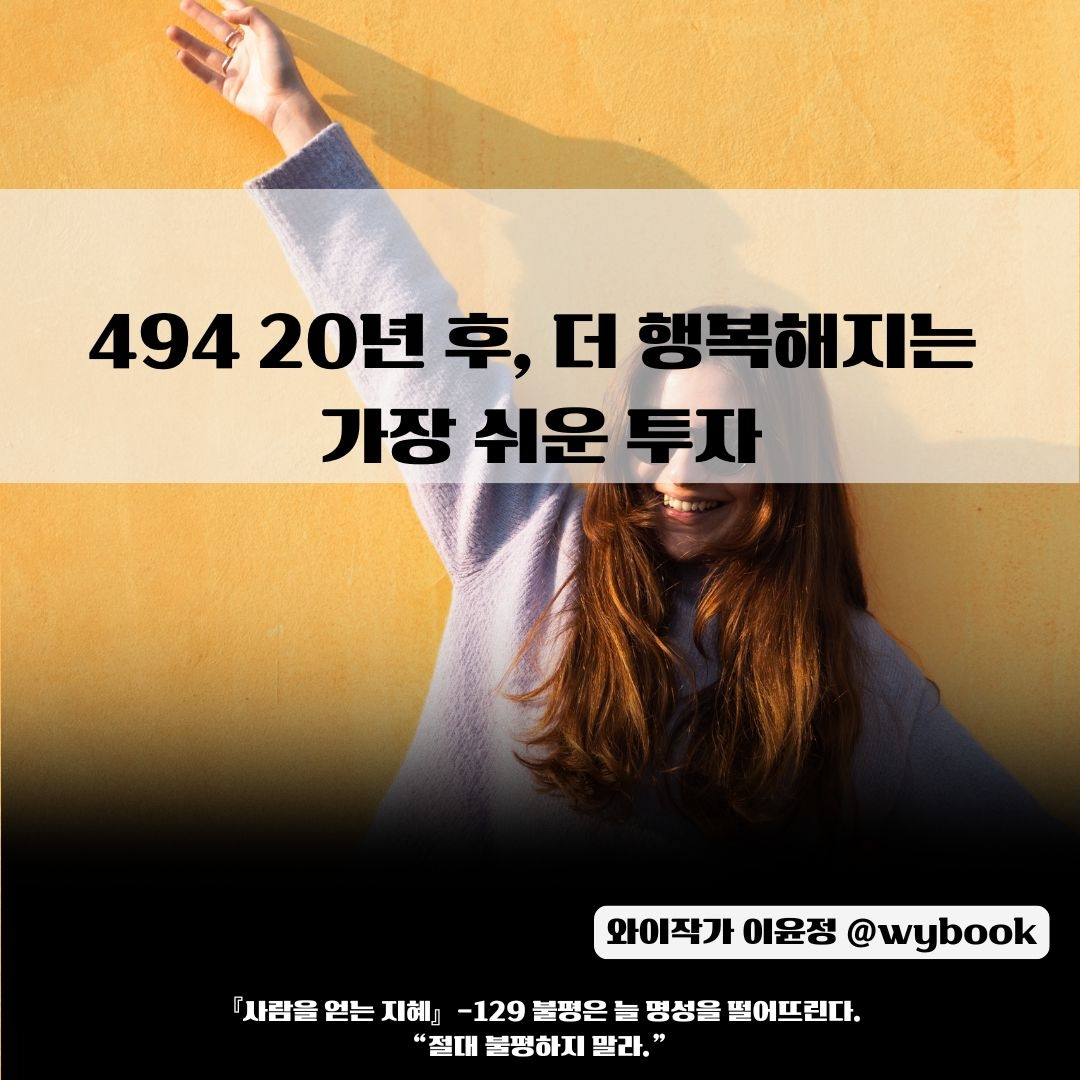불평을 들으면, 나도 그 사람에게 불평하고 싶어진다. 나의 불평을 먼저 얘기하면, 상대방에게 불평의 기회를 제공하는 구실을 제공하는 셈이다. 반대로 내가 호의를 받은 걸 감사하고, 다른 사람도 그렇게 만드는 것이 현명한 일이다. 절대 적을 만들지 말고, 친구를 얻는 데 도움 되는 일만 하며 살아도 인생은 짧다.