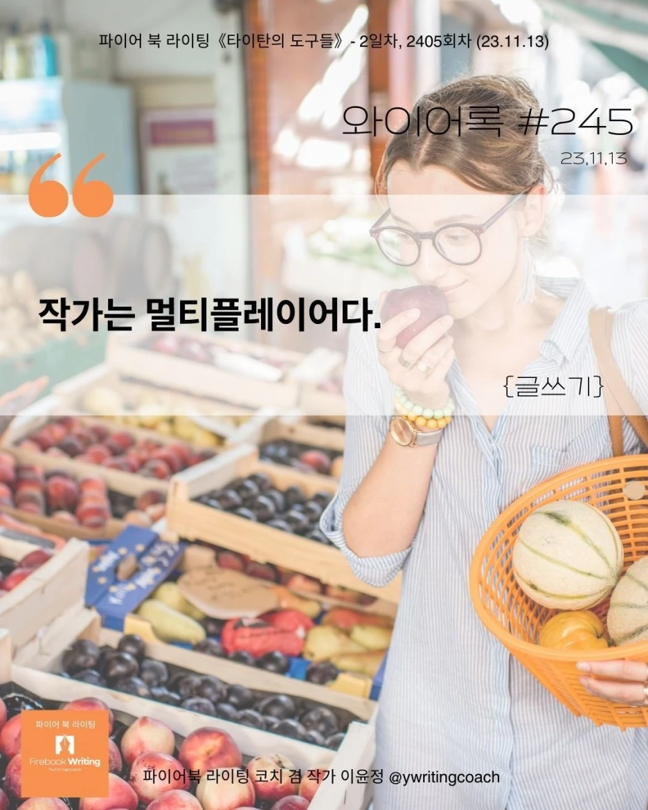 작가는 다양한 일을 하는 사람이에요. 글을 쓰는 작가는 당연하고요! 책을 만드는 편집자이면서, 강연을 하는 강사이며, 마케팅을 하는 마케터이기도 합니다. 이처럼 한 분야에만 국한되지 않고 여러 가지 일을 동시에 해내는 사람을 우리는 ‘멀티 플레이어’라고 부르잖아요? 작가는 멀티플레이어입니다. 원씽이 아닙니다.