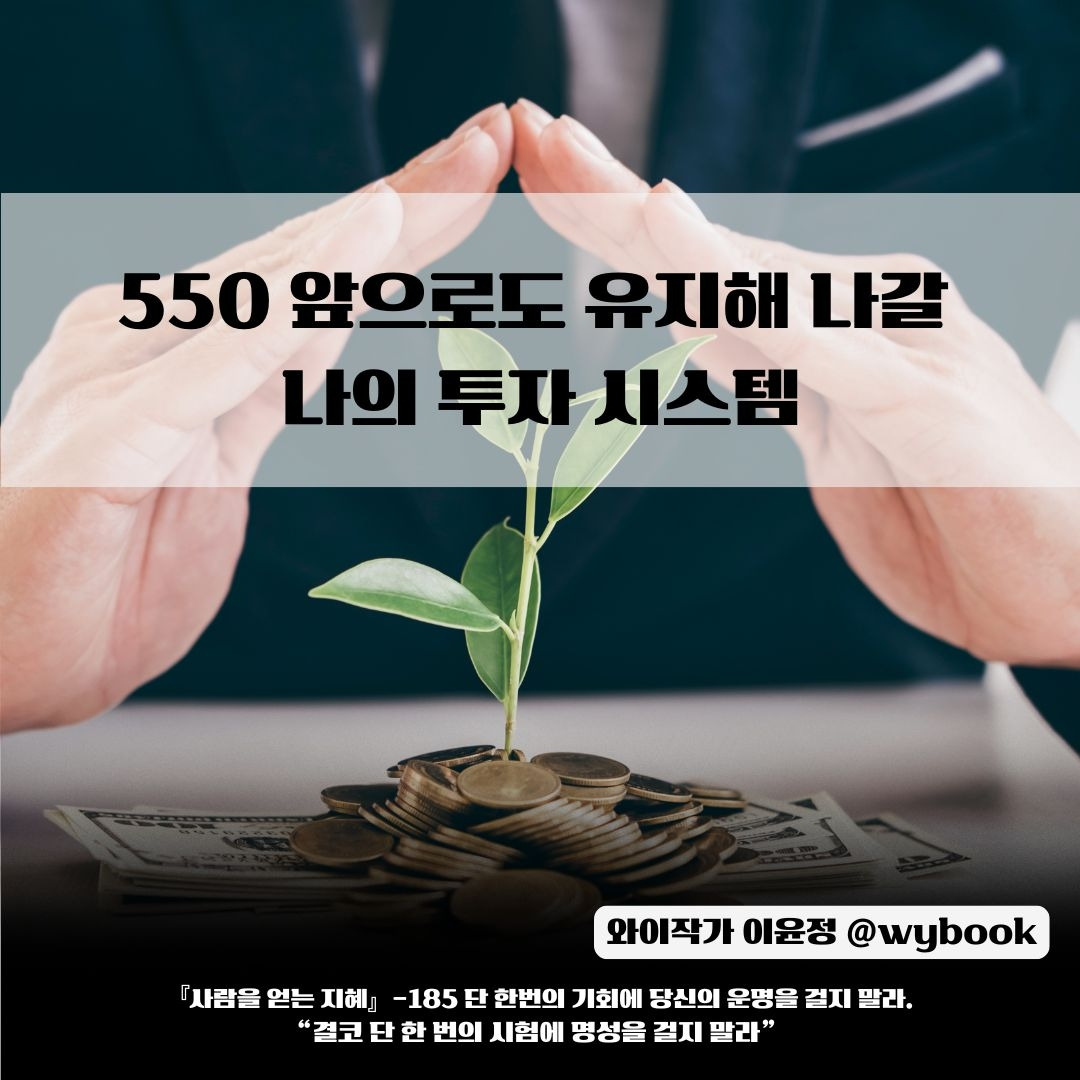 나 또한 9년 전까지는 내가 누구인지 몰랐다. 하지만 책 읽고, 글쓰기를 시작하면서 나만의 기준이 조금씩 생겼었다. 점점 다른 사람보다 나 자신을 더 신뢰하기 시작했다. 아무것도 모르던 나에게 책값으로 수백 만원을 투자했고, 강의료까지 포함하면 천 만원이 넘게 나자신에게 투자했었다고 볼 수 있다. 또한 아무것도 모르던 2021년에 주식을 시작했던터라 초심자의 행운을 믿고 퇴사를 결정했다. 단 한번의 기회에 나의 운명을 걸었던 것 같다. 하지만, 2022년 하락장을 경험하면서 한 번의 시험을 겪었다. 버텨냈다. 그 이후 욕심내지 않고 감정은 빼고 원칙대로 투자했다. 버텨냈다. 주식은 회복했고, 100% 수익률을 달성한 것도 여럿 생겼다.