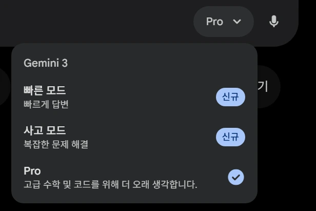 Gemini 3 빠른 모드, 사고 모드, Pro