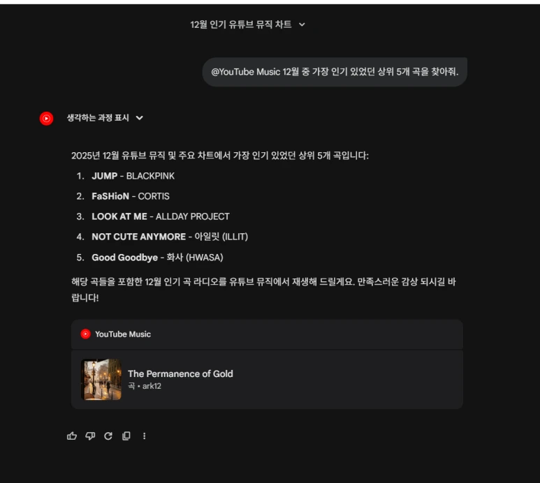 @구글 뮤직 가장 인기있었던 상위 5개 곡 찾기