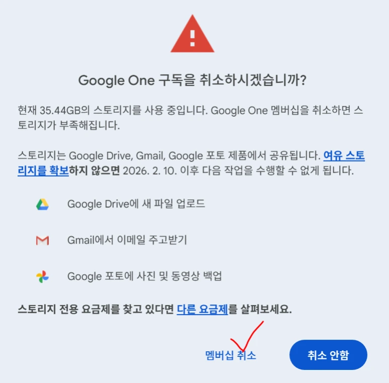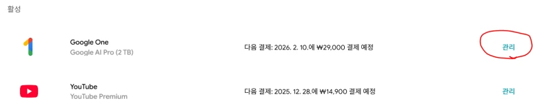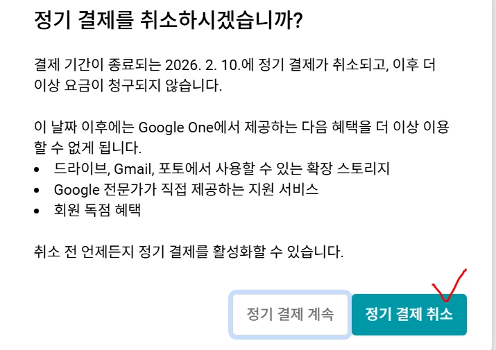 정기 결제 취소를 누르면 다음 달부터 취소가 됩니다. 제 경우에는 갤럭시 z폴드7 구매시 6개월 무료 혜택을 받고 있어서 내년 2월 부터 유료로 결제가 진행되는군요.