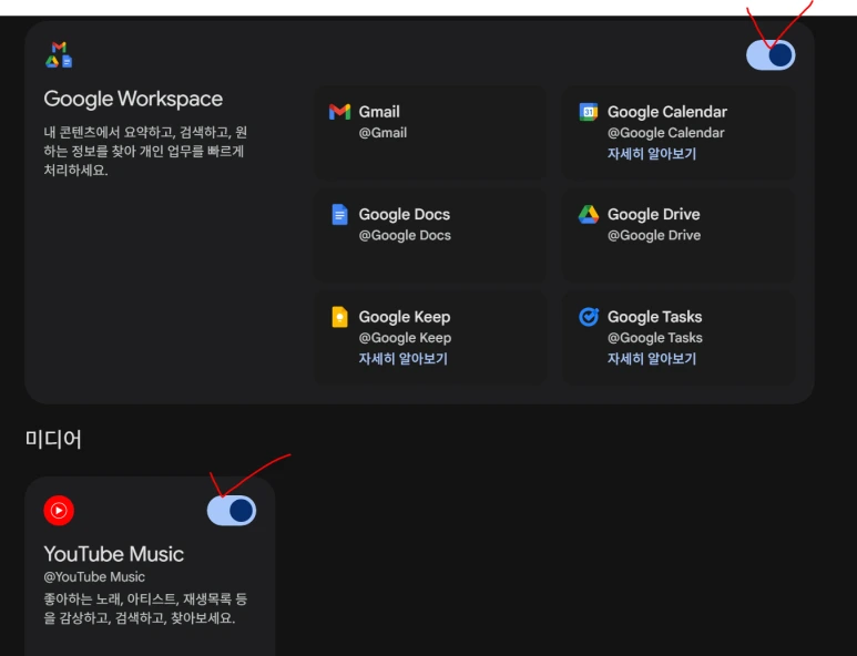 지메일, 캘린더, 구글 문서, 구글 드라이브 등 워크스페이스 계정과 연결할 수 있습니다.